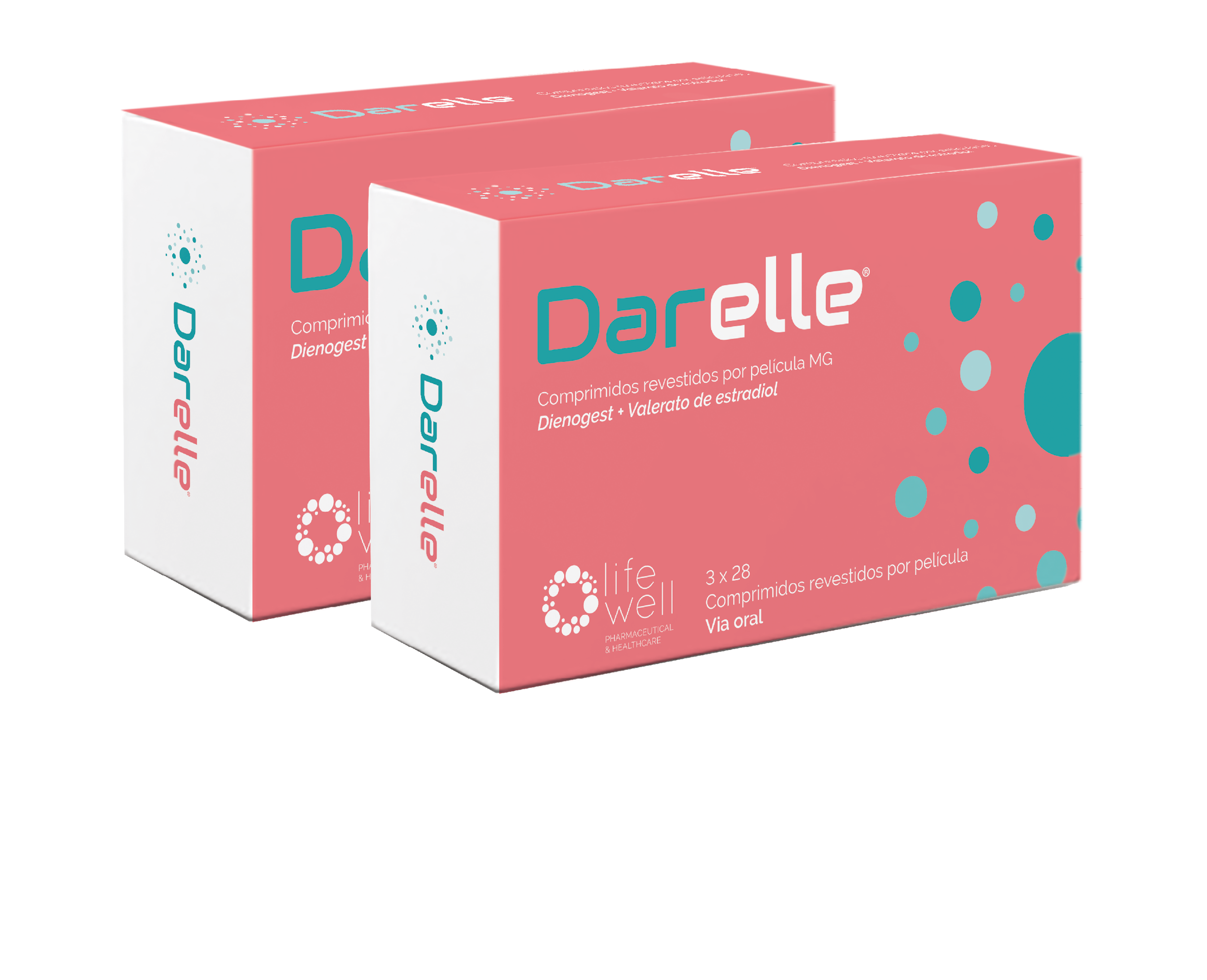 Apresentações: caixas Darelle de 1 mês (28 unidades) e 3 meses (84 unidades).